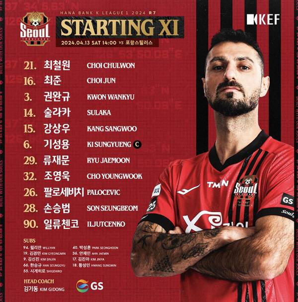 린가드가 빠진 서울 공격진은 일류첸코, 조영욱 손승범이 이끈다. 22세 자원인 손승범은 지난 대구전에 이어 두 경기 연속 선택을 받았다.