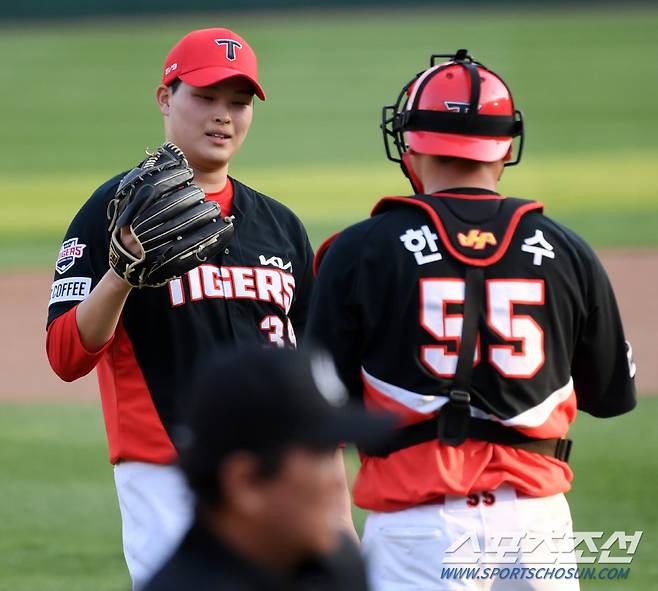 13일 대전 한화생명이글스파크에서 열린 한화 이글스와 KIA 타이거즈의 경기. 승리한 KIA 선수들이 기뻐하고 있다. 대전=박재만 기자 pjm@sportschosun.com/2024.04.13/