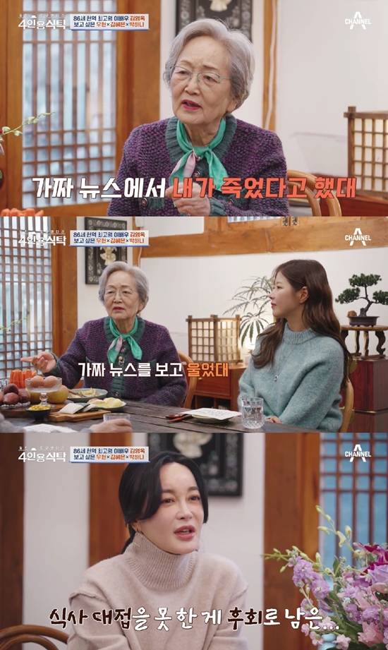 배우 김영옥은 지난 2월 방송된 채널A '4인용식탁'에서 김혜은은 초대하며 "유튜브에 김영옥이 죽었다고 나왔다더라. 가짜뉴스를 보고 그렇게 울었다고 한다. 보자마자 울어줬다는 후배가 그렇게 쉽냐"며 김혜은에게 고마움을 드러냈다.