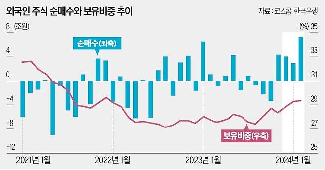 가장 우려되는 것은 현 정부의 경제정책이 무력화될 수 있다는 점이다. 가뜩이나 4·10 총선에서 ‘여소야대’의 입법적 한계를 깨지 못한 정책 여건에서 외국인 자금은 금융수익을 최우선시함에 따라 현 정부의 정책에 비협조적일 때가 많아질 수 있기 때문이다. 이 문제는 우리 경제 주권의 약화와 같은 의미를 갖는다.