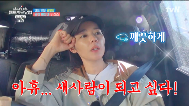 '텐트 밖은 유럽 남프랑스' "너무 더럽다" 한계에 다다른 한가인이 드디어 상쾌하게 씻었다.