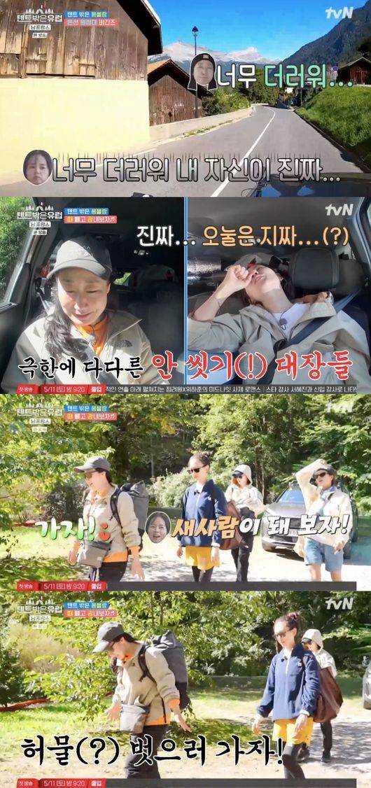 14일 방송된 tvN 예능 '텐트 밖은 유럽 - 남프랑스 편'(이하 '텐트밖')에서는 프랑스 국경을 넘어 스위스로 향하는 텐밖즈 4인방 라미란, 한가인, 조보아, 류혜영의 이야기가 그려졌다.