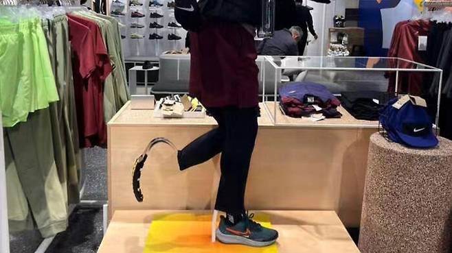 11일(현지시간) 영국 일간 가디언에 따르면 영국 패럴림픽 육상 선수 출신인 스테프 리드는 최근 자신의 틱톡 계정에 올린 영상에서 신발을 한 짝만 신고 다른 다리엔 경기용 의족을 단 나이키 매장의 마네킹 사진을 보고 매우 기뻤다고 말했습니다.