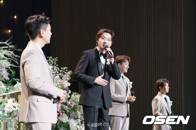 특히 이날 결혼식에는 '군 복무' 중인 고우림도 휴가를 내고 아내이자 전 피겨스케이팅 국가대표 선수 김연아와 함께해 의리를 뽐냈다. 고우림과 강형호를 비롯해 배두훈, 조민규까지 포레스텔라 완전체 멤버들이 함께 축가 무대를 꾸미는 모습이 함께 포착돼 훈훈함을 더했다.
