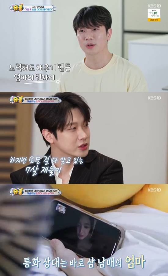지난 14일 방송된 KBS 2TV '슈퍼맨이 돌아왔다'(이하 '슈돌')에서는 이혼 후 삼남매를 육아 중인 최민환의 일상이 그려졌다.