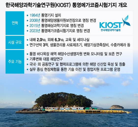 통영기지에서 시작해 통영해양생물자원보전장(2008년), 통영해상과학기지(2015년), 통영메가코즘시험기지(2023년)로 40여 년 간 수차례 명칭이 바뀔 때마다 이곳 기능과 역할도 바뀌었다. 그 사이 '전 세계 가장 오래된 해양연구기지'라는 기록도 세웠다. 오랜 역사만큼 배출한 R&D(연구·개발) 성과가 적잖다.