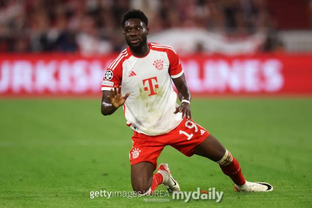 [아스날 사카, 바이에른 뮌헨 수비수 데이비스, 김민재. 사진 = 게티이미지코리아]