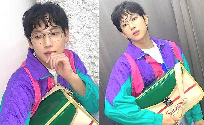 공개된 사진 속 임시완은 보라색, 초록색, 분홍색이 섞인 컬러풀한 자켓에 청바지를 매치에 복고 패션의 정석을 선보였다. 또 레트로 안경을 함께 매치해 그 시절 감성의 정점을 찍어 웃음을 자아냈다.