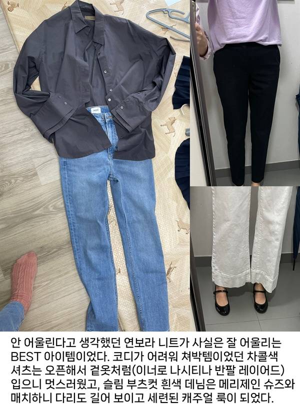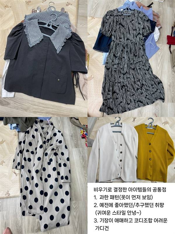 4) 아이템이 없는 건 아닌데 필요한 기본 아이템(이너로 입을 티셔츠나 얇은 니트 등)이 없어 갖고 있는 아이템 중 코디가 안 되어 못 입는 아이템이 있었다.