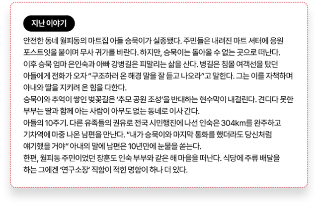 장훈이 기자에게 물었다. 유족들이 가장 원하는 게 뭔지 아냐고. 글쎄, 오래도록 기억되는 것일까. 말을 고르는 사이 답이 돌아왔다.