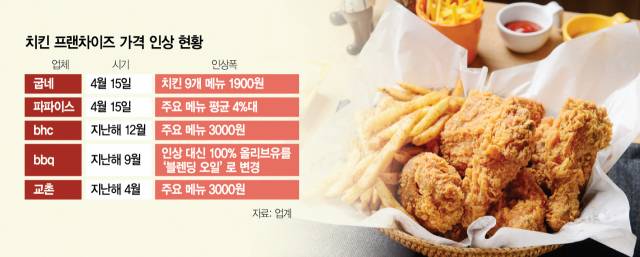 치킨 가격 ‘연쇄 인상’ 현실화