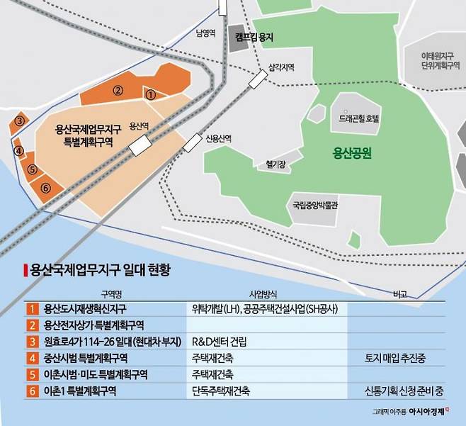 서부이촌동의 한 부동산에 색이 바랜 용산국제업무지구 ‘드림허브’ 프로젝트 조감도가 걸려 있었다. 서부이촌동은 2007년 국제업무지구 개발구역에 포함됐다가 2013년 개발이 무산되면서 ‘고통의 7년’을 보냈다. 집값은 폭등과 폭락을 거듭했고 통합개발 찬반을 놓고 주민들이 갈라졌다. 준공 50년이 지난 중산시범·이촌시범아파트, 이촌1구역 등 서부이촌동 낙후 주거지들도 국제업무지구 개발을 계기로 정비사업에 속도를 내고 있다.