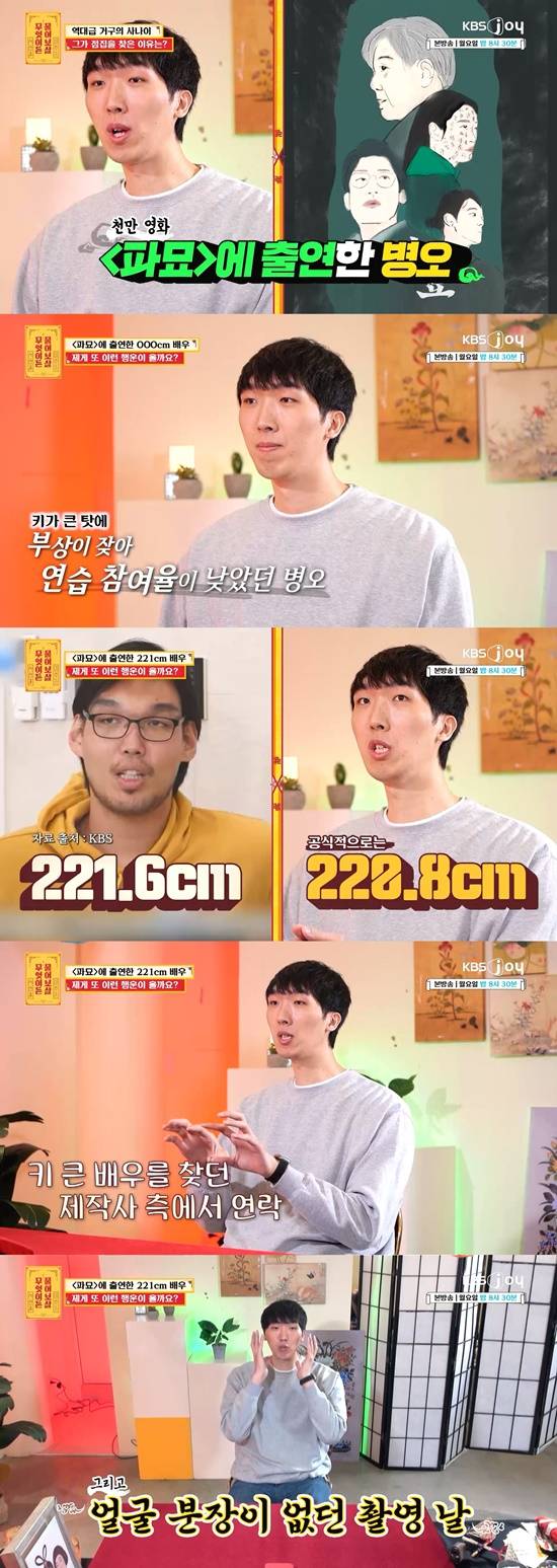 15일 방송된 KBS Joy에서 '무엇이든 물어보살'에는 천만 관객을 동원한 영화 '파묘'의 일본 장군 귀신 대역을 맡은 김병오가 출연했다.