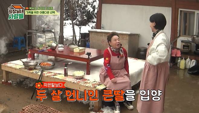 송옥숙은 "딸을 낳고 둘째를 가지려 했는데 나이가 많아서 잘 안 되더라. 유산을 한 번 했다. 병원에서 아이를 더 갖지 않으면 좋겠다고 하길래 입양해야겠다고 생각했다. 제 딸보다 두 살 많은 언니를 입양했다. 8살에 왔으니 (입양된 사실을) 안다"라고 전했다.