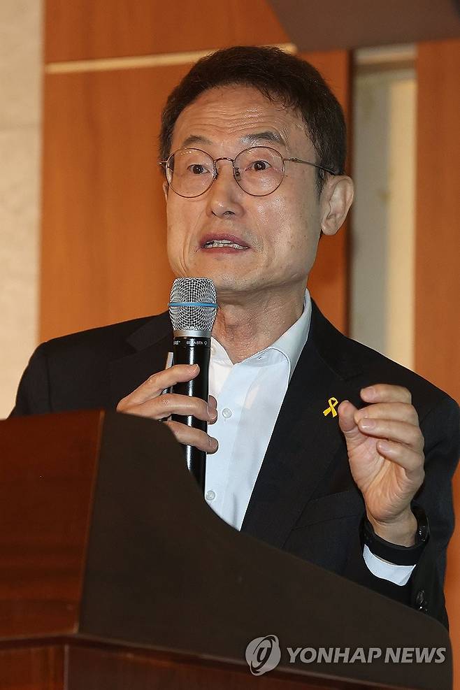 (서울=연합뉴스) 강민지 기자 = 조희연 서울시교육감이 16일 오전 서울 용산구 백범김구기념관에서 열린 '2024 서울교육 시민참여단 워크숍'에서 '서울교육혁신을 향한 10년의 질주'를 주제로 발표하고 있다. 2024.4.16