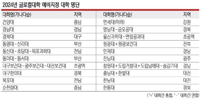 대학 간 통합이나 연합을 통해 혁신 시너지를 내겠다고 밝힌 대학들이 올해 글로컬대학 예비 지정에서 좋은 점수를 받았고, 이 중 사립대·전문대가 상당수 포함됐다.