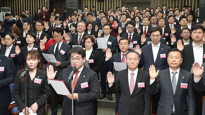 당선인들은 오늘 채택한 결의문에서 "다시 시작하겠다. 기득권을 내려놓고 오직 국민만 바라보고 한마음 한뜻으로 변화해 나가겠다"고 밝혔습니다.