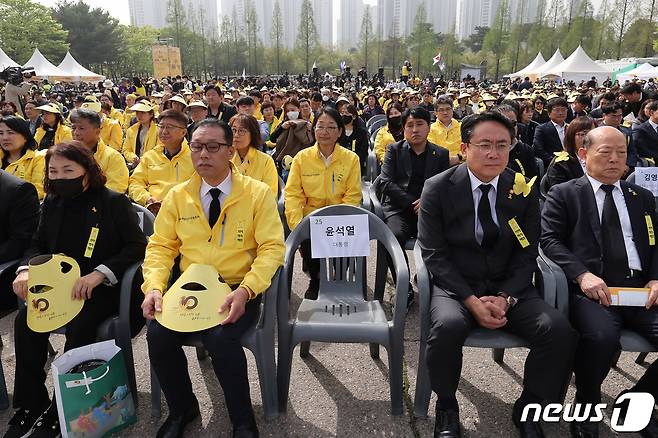 (안산=뉴스1) 김영운 기자 = 16일 오후 경기도 안산시 단원구 화랑유원지에서 열린 세월호참사 10주기 기억식에 윤석열 대통령의 자리가 비어 있다. (공동취재) 2024.4.16/뉴스1