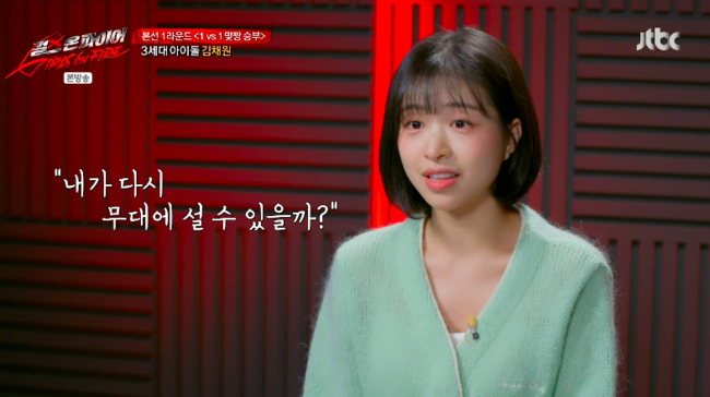 김채원은 “다시 한 번 요기를 내서 ‘걸스 온 더 파이어’에 지원했다”라고 소개했다. 이어 “제가 2015년 8월 24일 ‘에이프릴’로 데뷔했고, 다양하게 음악 방송 활동했다. 에이프릴 그룹 자체가 저한테 꿈이자 전부였다”라고 전했다. 하지만 7년간 활동했던 에이프릴은 지난해 1월 공식 해체한 바. 김채원은 “그게 딱 사라지고 나니까 뭔가 공허하고 길을 잃은 듯한 느낌이 있어서 제가 혼자 생각했을때 ‘내가 다시 무대에 설 수 있을까’, ‘내가 다시 노래할 수 있을까’ 아무리 생각해도 저는 무대에서 노래를 하고 싶은데 그런 기회가 되면 좋지 않을까 생각해서 지원하게 됐다”라고 지원하게 된 이유를 밝혔다.