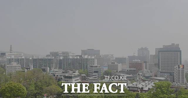 [더팩트ㅣ장윤석 기자] 전국 대부분 지역의 미세먼지 농도가 '나쁨' 수준을 보이는 17일 오전 서울 종로구에서 바라본 도심 일대가 뿌옇게 보이고 있다.