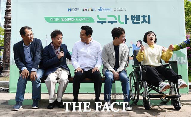 '누구나 벤치'에서 기념촬영 하는 오세훈 시장 [TF사진관]