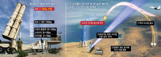 애로-2는 50~100㎞ 고도로 비행하는 중장거리 미사일을 요격한다. 애로3은 100㎞ 이상에서 탄도미사일을 요격할 수 있으며 지난해 처음 실전에서 시험이 이뤄졌다. 현재 애로-4도 개발 중이다. 애로는 2000년대 들어 배치되기 시작해 팔레스타인 무장정파 하마스를 돕는 예멘 후티 반군의 탄도미사일을 잇따라 요격했다.