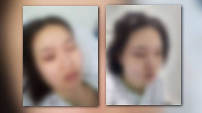 20대 이 모 씨의 눈 주위가 시퍼렇게 멍들었고 얼굴은 퉁퉁 부었습니다.