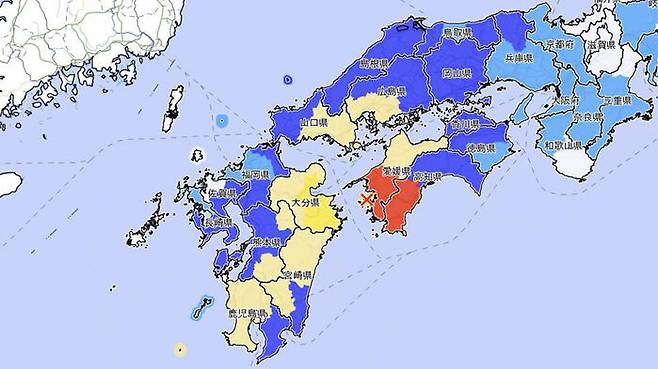 일본 기상청에 따르면 시코쿠 서부인 고치현 스쿠모시와 에히메현 아이난초에서는 진도 6약의 흔들림이 감지됐습니다.