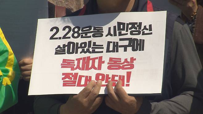 그러면서 시민 의견 수렴 없는 우상화 사업을 중단하고 대구시의회에도 4·19정신에 입각한 판단을 하라고 촉구했습니다.