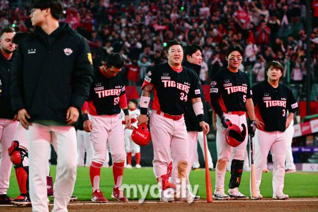[마이데일리 = 곽경훈 기자] 18일 인천SSG랜더스필드에서 진행된 '2024 신한 SOL 뱅크 KBO 리그' 기아-SSG의 경기. KIA가 5-7로 패배한 뒤 팬들에게 인사를 하고 있다.