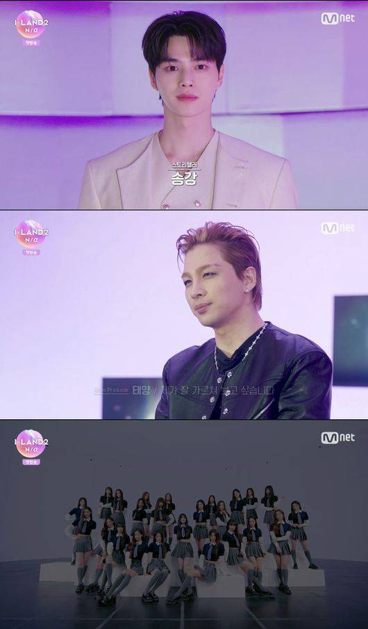 송강은 ‘아이랜드2’의 프로듀스를 맡은 이들도 소개했다. 태양을 필두로 리정, 모니카, 24, VVN 등이 나섰다. 태양은 “가수 활동을 하면서 느낀 것을 토대로 잘 가르치고 싶다”는 포부를 전했다. VVN은 “더블랙레이블이 프로듀싱을 하는 만큼 예상할 수 없는 음악이 나올 것 같다”고 말했고, 24는 “스타성이 없는 친구는 없다. 더 빛날 수 있도록 돕겠다”고 이야기했다. 모니카와 리정은 “무궁무진한 잠재력을 지녔기에 꿈을 이뤄줄 수 있지 않을까 싶다”며 기대감을 보였다.