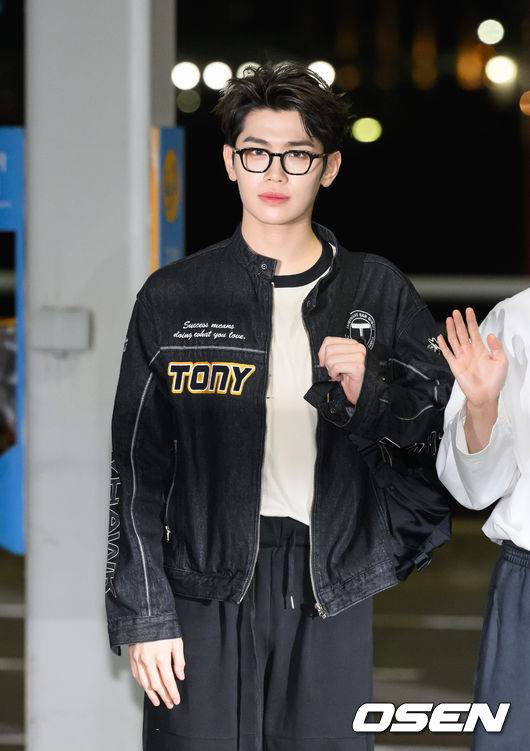 제로베이스원 김태래가 출국장으로 향하며 인사를 하고 있다. 2024.04.18 /sunday@osen.co.kr