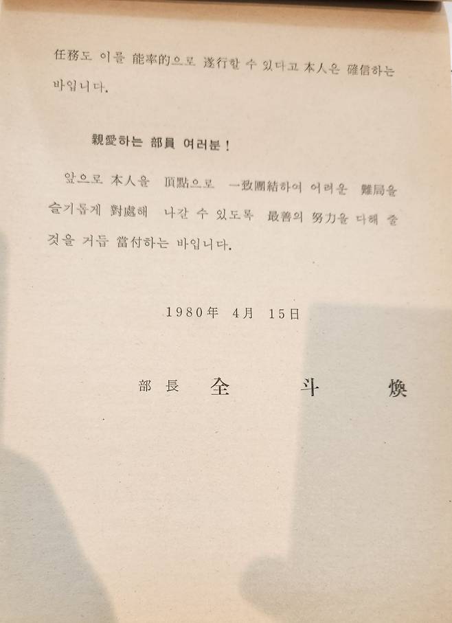 [유석재의 돌발史전] 최초 공개, 1980년 4월 전두환 중정부장의 취임사