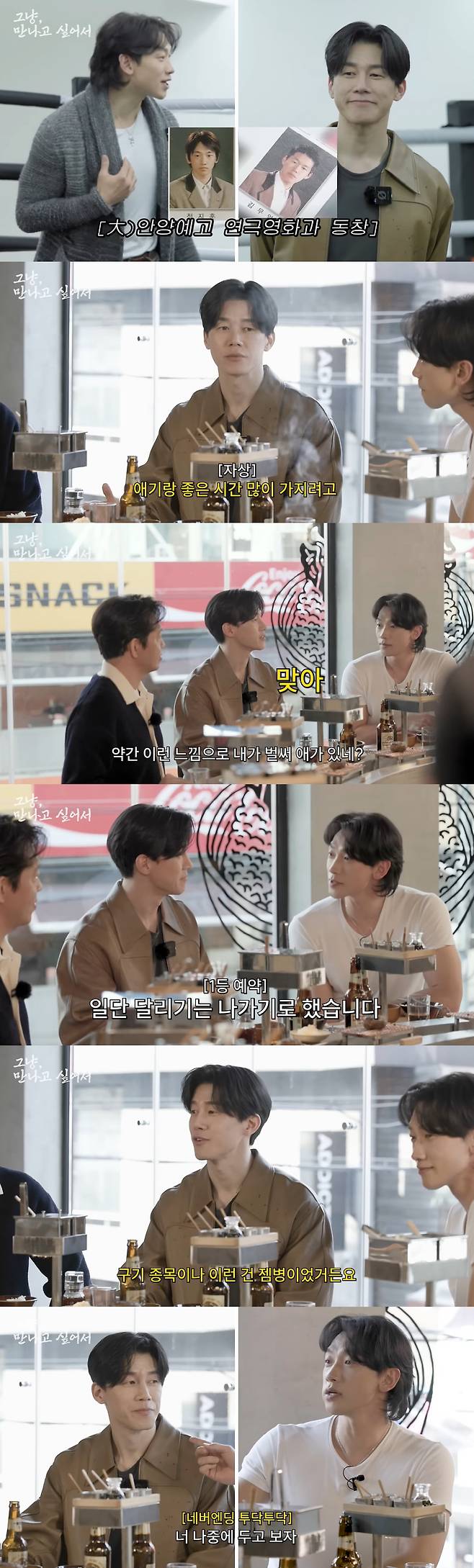 그는 "동창생 중에 제일 친했고 나랑 에피소드가 있는 게 1학년 장기 자랑을 우리 둘이 나가서 춤을 춰서 1등을 했다"며 "단기 속성 과외를 했는데 (김무열이) 몸을 잘 쓴다"며 추억을 소환했다. 이에 김무열은 "그때 '날개 잃은 천사' 리믹스 버전이었다"며 추억을 회상했다.