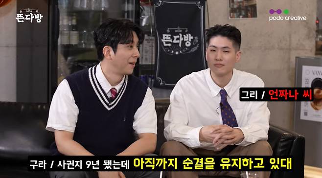 그런가 하면 김구라는 "사귄 지 9년 됐는데 아직 순결을 유지하고 있대. 대단하네"라며 박원찬을 바라봤다.