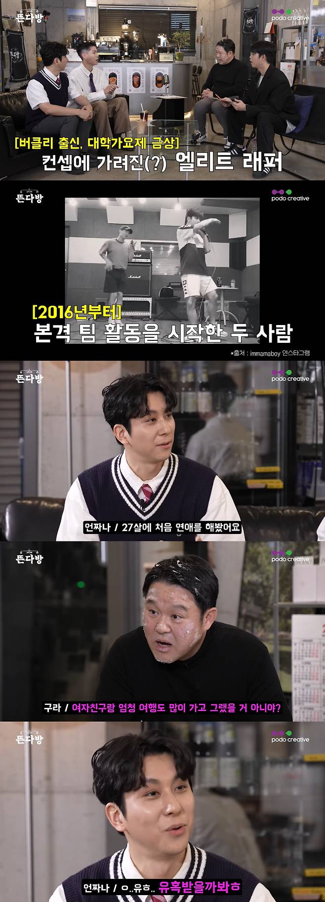 이찬은 "저는 2010년 대학가요제 출신으로 당시 금상을 받았다. 버클리 음대를 휴학하고 한국에 왔을 때 출전하게 됐다"라고 말했다. 박원찬은 이찬과 중학교 동창으로 함께 대학가요제에 나가려고 했지만, 당시 같은 학교 출신끼리만 출연이 허용돼 나가지 못했다고. 박원찬은 "그래서 저는 인순이 선배님 콘서트 투어 객원 래퍼로 활동했다. '너(이짜나)는 방송가, 나는 공연계 뚫어보겠다!'는 생각이었는데 이 친구(이짜나)만 잘 됐다. 따로 지내면서 저는 창업 등 여러가지를 해보다가 다시 음악을 하게 됐다"라며 뭉치게 된 계기를 설명했다.