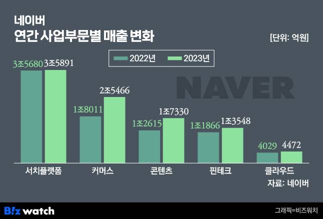 네이버의 전략은 실적 성장이 가파른 e커머스 사업 성과를 더욱 끌어올리기 위한 목적에서 나왔다. 네이버의 커머스 사업 매출은 지난해 기준 2조5466억원으로 전년대비 41% 증가했다. 네이버의 기존 핵심 사업인 서치 플랫폼의 매출(3조5891억원) 못지않다. 특히 성장성은 비교하기 어려울 정도로 가팔랐다. 서치 플랫폼 매출은 전년대비 0.6% 증가하는데 그쳤기 때문이다.