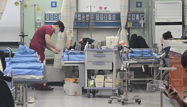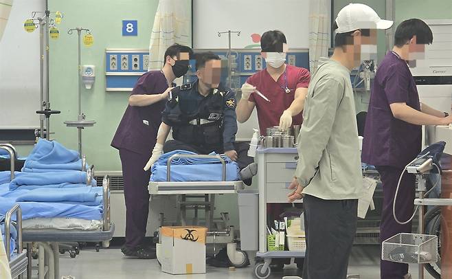 | ▲ 19일 오후 괴한에게 흉기로 공격 받은 경찰관들이 광주광역시 남구 한 병원에서 치료 받고 있다. |