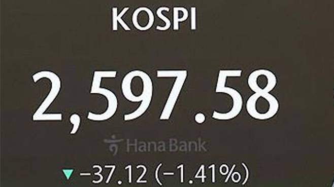 장중 3%까지 내렸던 한국 코스피 종가는 1.63% 떨어진 2,591.86을 기록하며 2,600선 아래로 내려왔습니다.