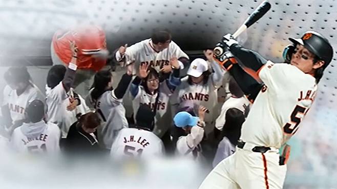 포수 바로 뒤에서 이정후의 유니폼을 입고 응원하던 한국 팬들이 정말 즐거워하네요.