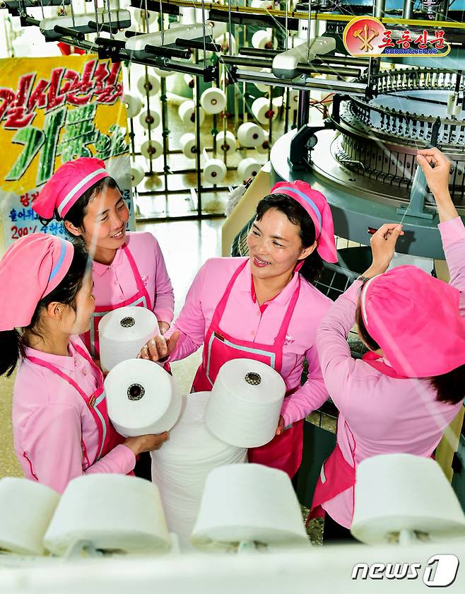 (평양 노동신문=뉴스1) = 북한 노동당 기관지 노동신문은 21일 일꾼들간 서로 돕고 이끌며 일을 잘해나갈 것을 촉구했다. 사진은 선교편직공장 일꾼들의 모습.