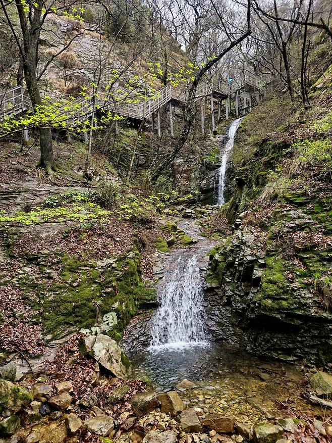 제법 많은 봄비가 내린 덕분에 계곡을 흐르는 물이 풍성하고 낙차가 큰 곳에는 작은 폭포가 돼 흐른다. 가장 먼저 반기는 야생화는 화려한 현호색. 신기하게도 작은 새가 고개를 쳐들고 노래 부르는 것처럼 보인다. ‘종달새 아가씨’라는 별명이 붙은 이유다. 현호색 꽃말은 보석, 비밀주머니. 오솔길을 따라 보일 듯 말 듯, 드문드문 피어있는 꽃은 비밀을 가득 담은 보석같다.
