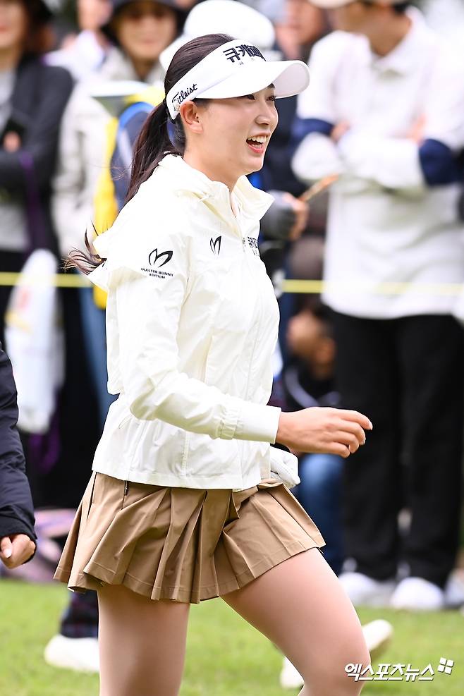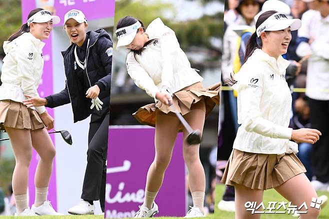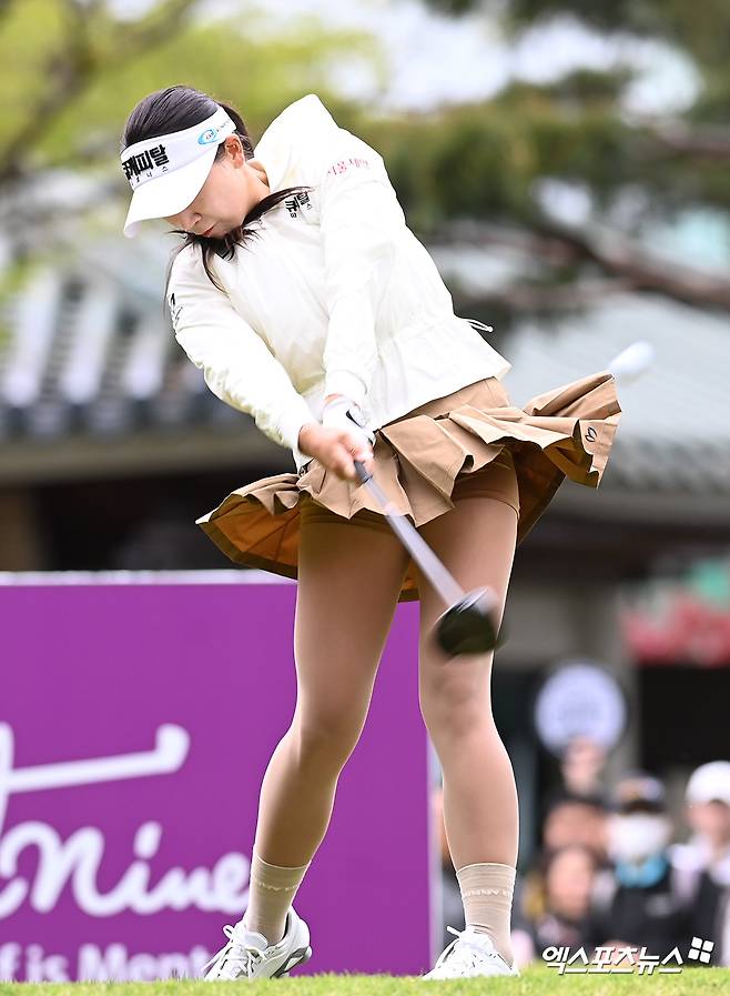 (엑스포츠뉴스 김해, 고아라 기자) 21일 경상남도 김해 가야 컨트리클럽(파72ㅣ6,818야드)에서 열린 '넥센 세인트나인 마스터즈 2024'(총상금 9억 원, 우승상금 1억 6천2백만 원) 최종 라운드 경기, 이수진3이 1번홀 티샷을 하던 중 강한 바람에 날린 치마가 허리까지 올라가 속바지까지 그대로 노출되는 해프닝이 발생했다.