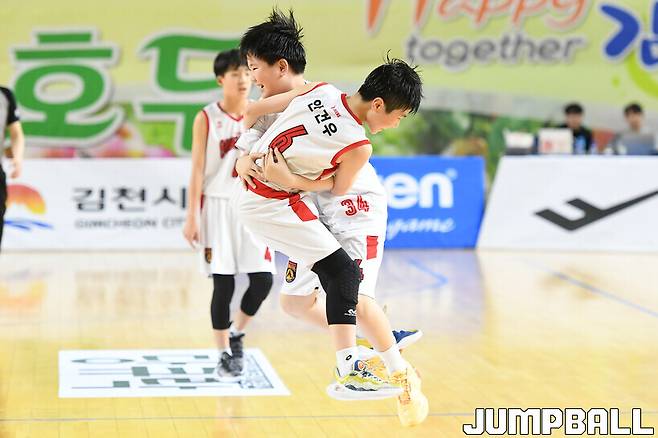 [점프볼=김천/박상혁 기자] 21일 김천체육관에서 열린 '아이에스동서 제23회 협회장배 전국초등농구대회' 송정초와 중앙초의 8강 경기, 송정초가 중앙초에 38-32로 승리했다.