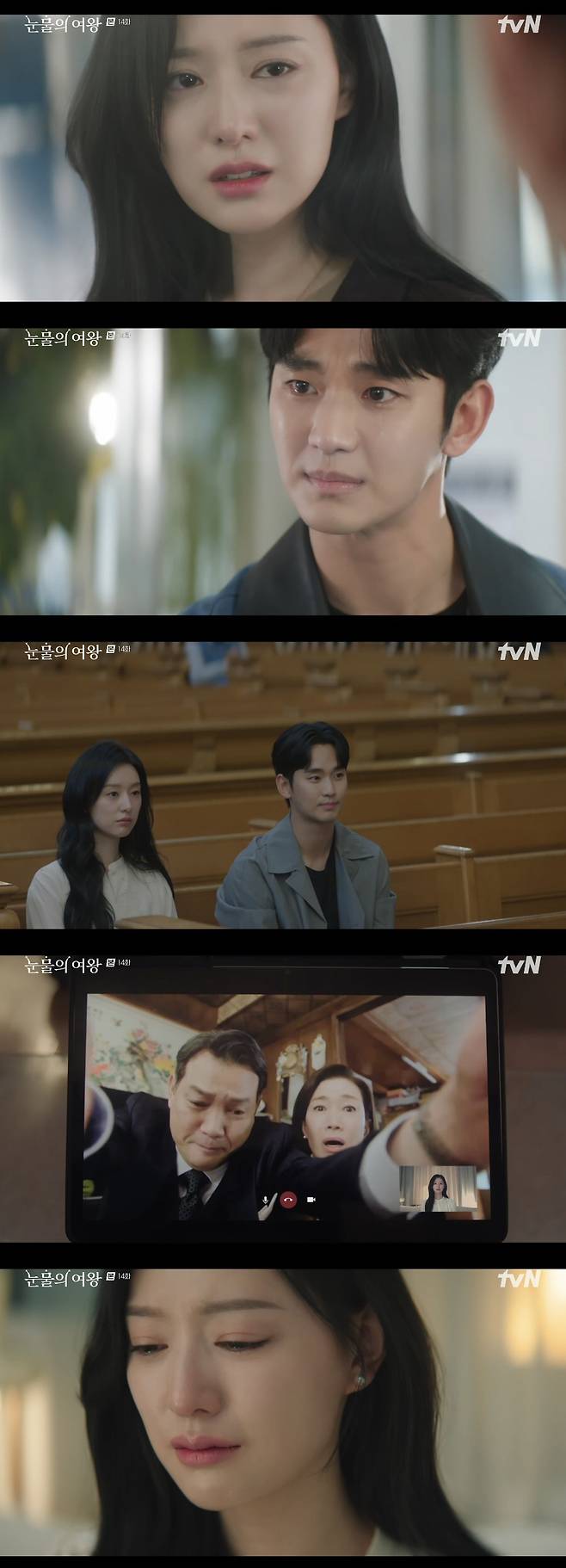 21일 방송된 tvN 토일드라마 '눈물의 여왕'에서는 백현우(김수현 분)가 홍해인(김지원 분)을 설득시켜 홍해인이 드디어 수술을 받은 모습이 전파를 탔다.