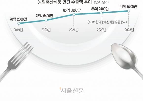 올해 1분기에도 식품 수출이 호조세다. 농림축산식품부에 따르면 올해 1분기 농축수산식품의 수출 규모는 전년 동기 대비 3.4% 증가한 22억 7000만 달러(3조 1300억원)를 기록했다. 2019년 70억 3000만 달러 수준이었던 농식품 수출 규모는 4년 만인 지난해 91억 6000만 달러까지 늘었다. 실제로 금융정보업체 에프앤가이드에 따르면 CJ제일제당의 올해 1분기 영업이익은 3416억원으로 전년 동기 대비 35.1% 증가한 것으로 나타났다. 같은 기간 대상의 영업이익은 전년 동기 대비 88.8% 늘어난 470억원, 롯데웰푸드의 영업이익은 83.9% 늘어난 342억원으로 추정된다. 삼양식품도 영업이익이 371억원으로 전년 동기 대비 55% 늘어날 것이라는 전망이 나온다.