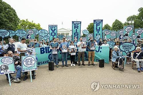 IMAGE DISTRIBUTED FOR OUR CHILDREN'S TRUST - Juliana plaintiff Jacob Lebel, center right, speaks during the My Voice. My Rights. Our Future. Rally to Save Juliana outside the White House with fellow Juliana plaintiffs on Sunday, April 21, 2024 in Washington. Juliana v. United States is a youth lead climate focused lawsuit that is currently being blocked by the Department of Justice. (Kevin Wolf/AP Images for Our Children's Trust) THIS PHOTO WAS TAKEN BY AP IMAGES FOR OUR CHILDREN'S TRUST