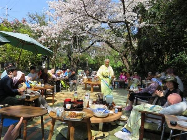 | ▲ 올해 4월초, 벚꽃놀이가 열려 어우러진 요리아이 입소자들의 모습. 사진출처: 공식홈페이지(http://yoriainomori.com) |
