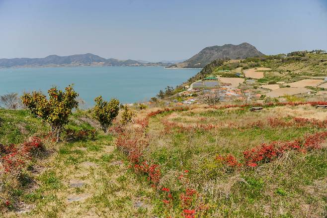 커피를 한잔 내려 마시고 꽃섬길로 나섰다. 다행히 진달래와 유채꽃이 반긴다. 큰산전망대에 오르니 개도와 금오도가 손에 닿을 듯 가깝다. 이럴 때마다 섬마다 쌓인 여행의 추억이 새삼스럽다. 생각해 보면 섬만큼 변함없는 여행지도 없는 듯하다. 조형물과 포토존 몇 군데가 생긴 것을 제외하면 하화도 역시 예나 지금이나 똑같다.