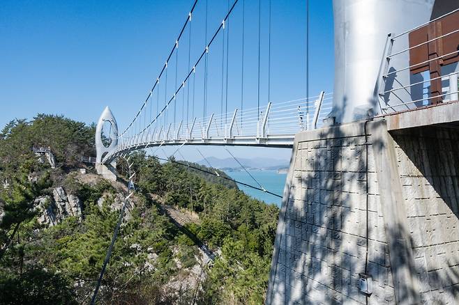 해안절벽 사이의 협곡에 설치된 길이 100m의 출렁다리로 2017년 개통되었다. 하화도 제1의 명소로 알려진 꽃섬다리는 그 모습 자체로도 아름답지만, 다리 중간 지점에서 보는 풍경도 환상적이다. 아찔한 절벽 아래 숨겨진 큰 굴과 바다 건너 상화도의 오롯한 자태를 감상할 수 있다.